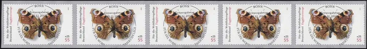 2504 papillon, bande de 5 avec numéro UNGERADER, ESSt Bonn