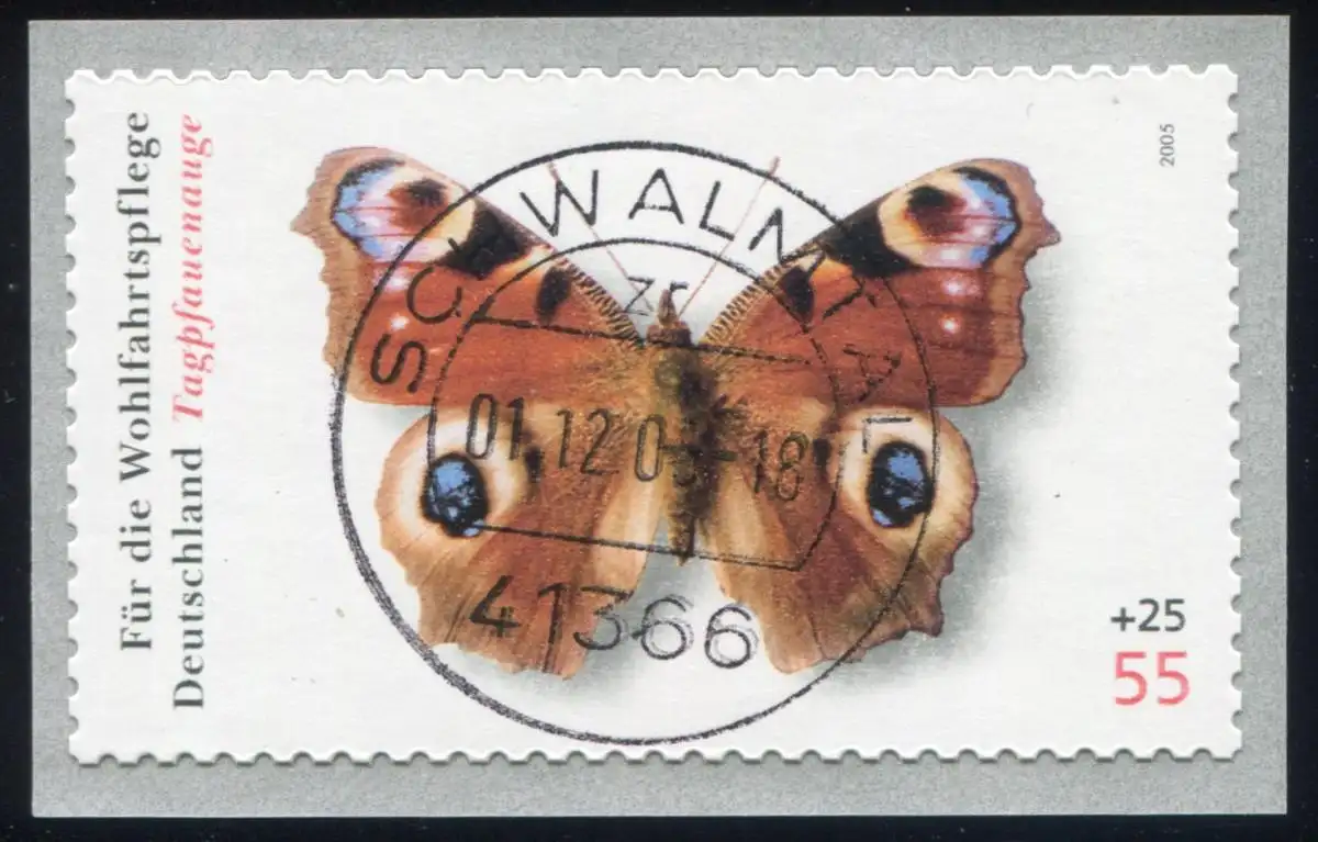 2504 Wofa oeil de paon du jour , ENTIÈREMENT SANS ROULEau, Tampon de jour du ET 1.12.2005