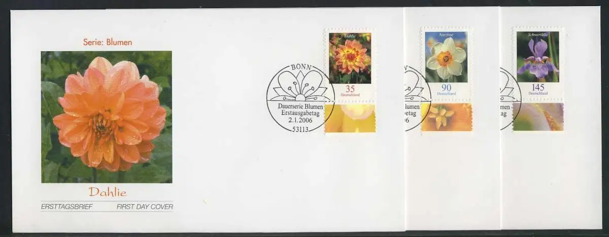 2505-2507 Fleurs 0,35, 0,90 et 1,45 euro sur 3 FDC ESSt Bonn