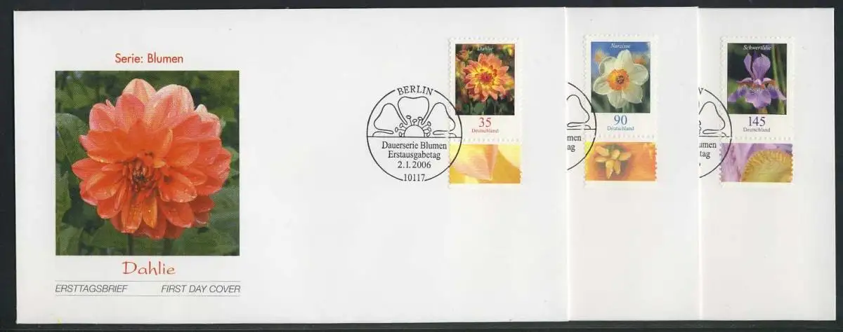 2505-2507 Fleurs 0,35, 0,90 et 1,45 euro sur 3 FDC ESSt Berlin
