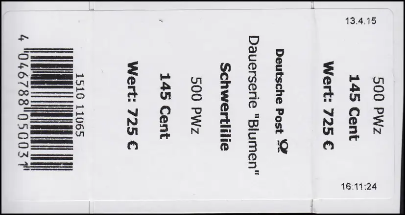 2507 Lice d'épée 145 Banderole / autocollant 500er, indication PWz, date + heure