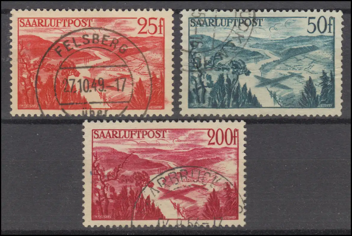 252-254 timbres de vol 1948, phrase cachetée avec des cachets d'approvisionnement en temps voulu