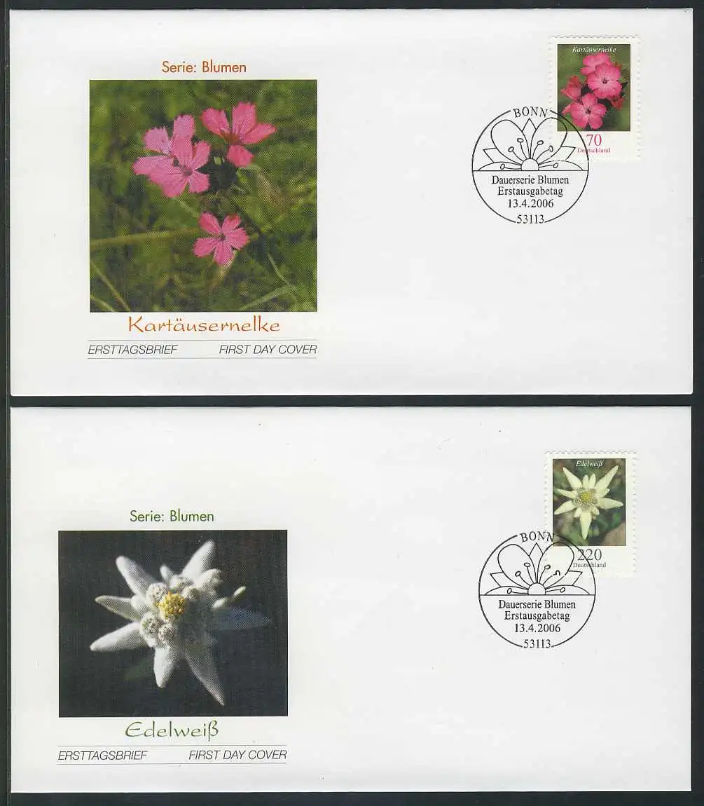 2529-2530 Fleurs 0,70/2,20 Euros numéroté FDC Bonn