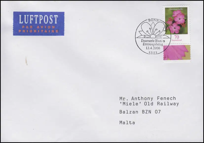 2529 Cartère Dianthus carthusianorum, Ronde, FDC ESSt Bonn 13.4.2006