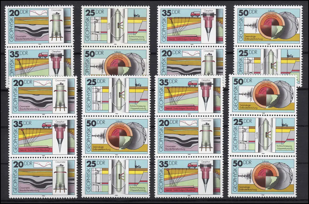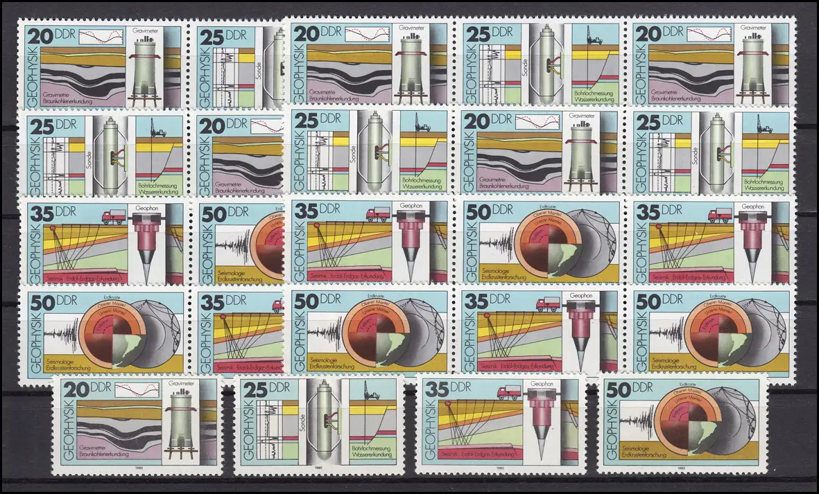2557-2560 Géophysique, 16 tirages groupés et 4 timbres individuels, set frais **
