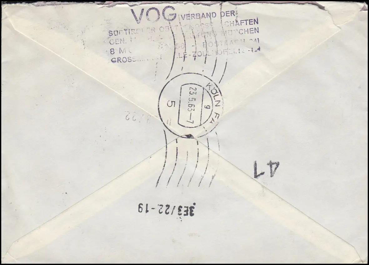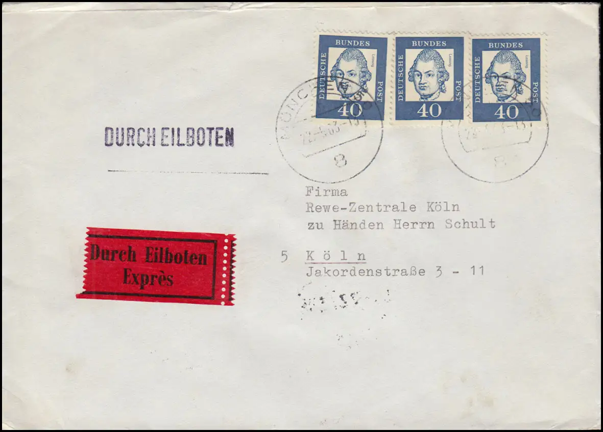 255y Important allemand 40 centimes 3 fois comme MeF sur lettre d'urgence MUNCHEN 22.5.1963