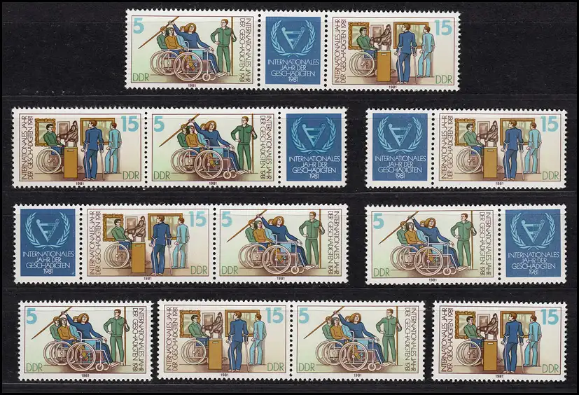 2621 - 2622 Année des handicapés, 6 tirages groupés + 2 Ezm, set frais de port **