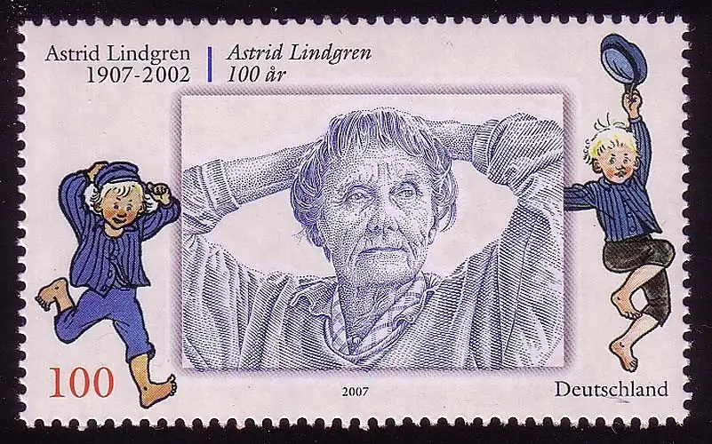 2629 écrivain Astrid Lindgren: Set à 10 timbres, tous ** frais de port