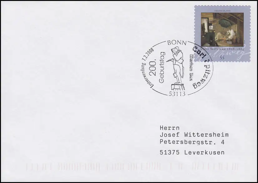 2648 Spitzweg autocollant de rouleau, FDC premier tampon d'utilisation Bonn