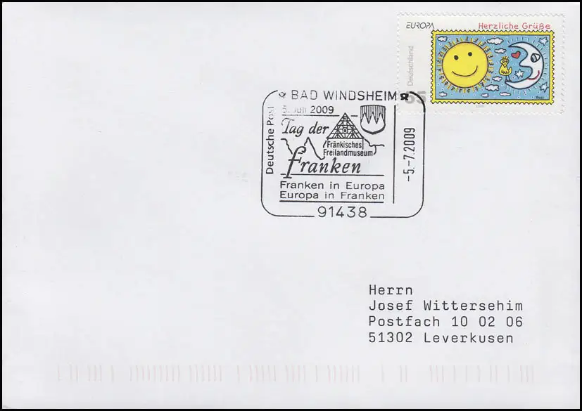 2662 Europe: La Lettre, Bf SSt Bad Windsheim Franken in Europa Museum 5.7.2009