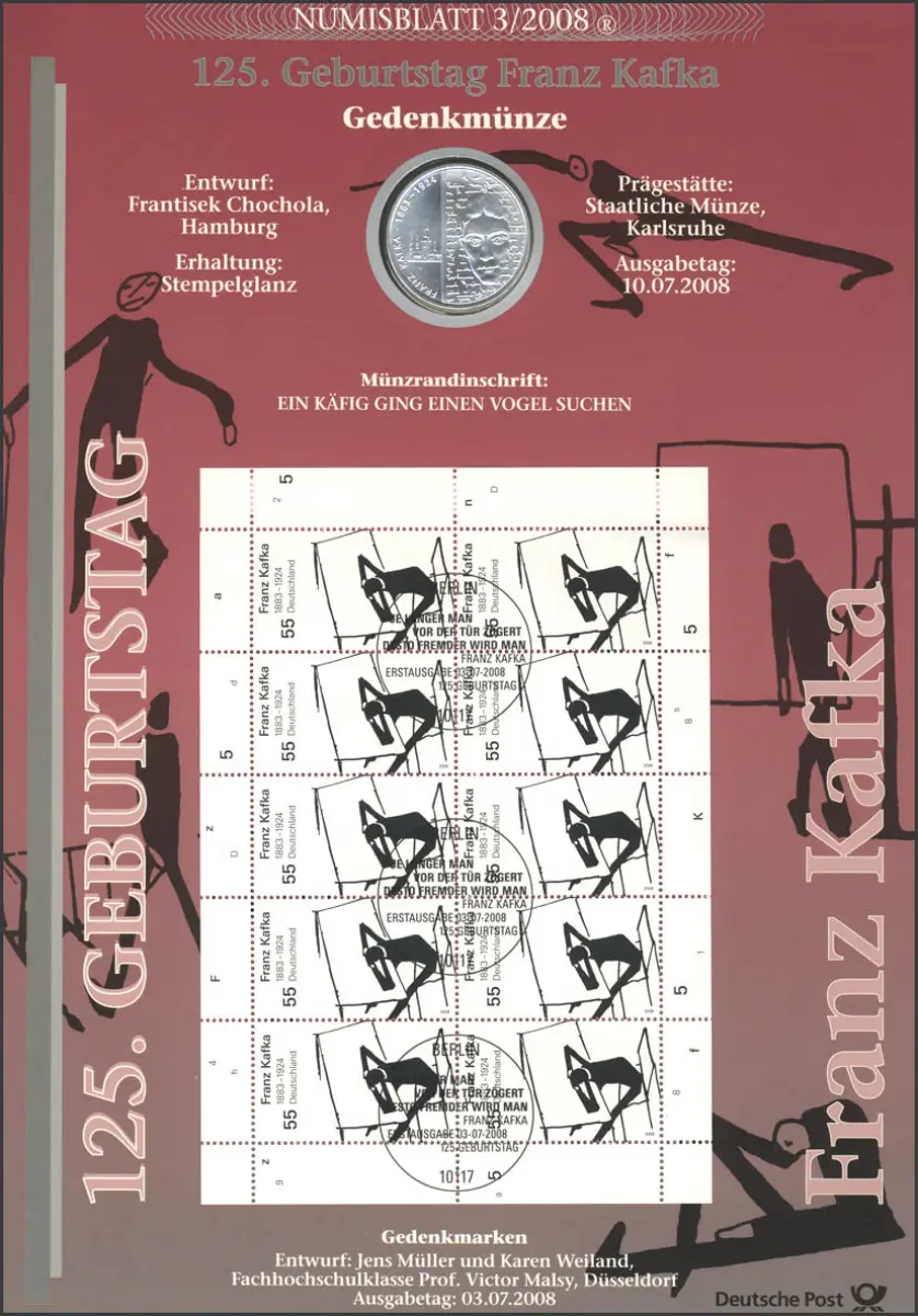 2680 Schriftsteller Franz Kafka - Numisblatt 3/2008