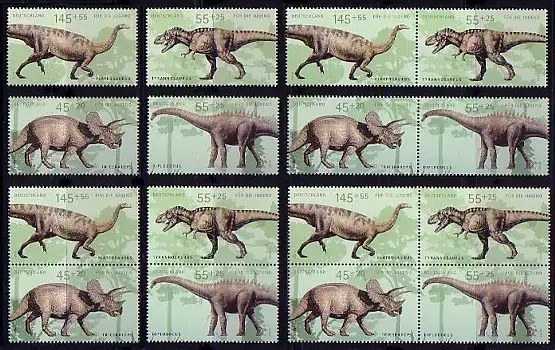 2687-2690 en bloc 73 dinosaures, 5 impressions et 4 timbres individuels, set **