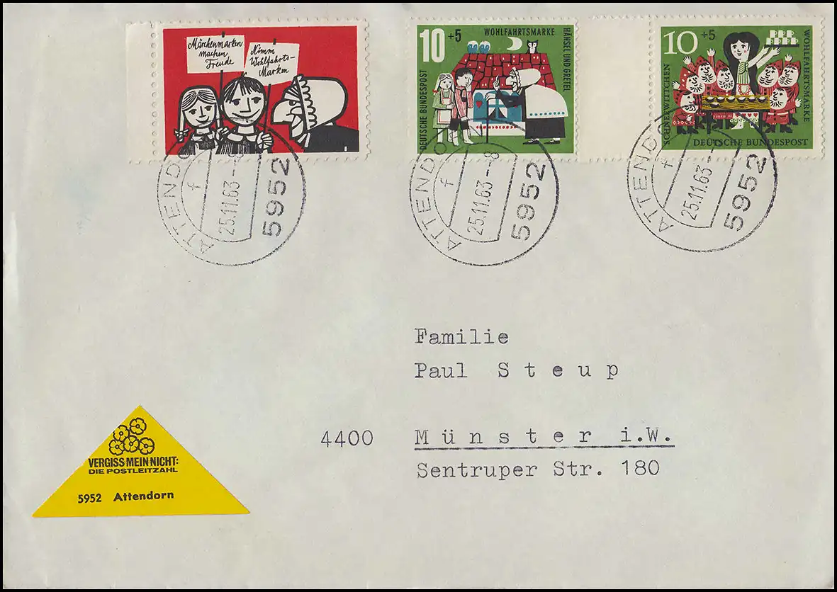 270+386 contes de fées MiF avec une vignette de bien-être appropriée, lettre ATTENDORN 25.11.63