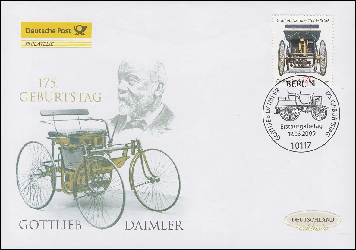 2725 Ingénieur et inventeur Gottlieb Daimler, Bijoux-FDC Allemagne exclusivement