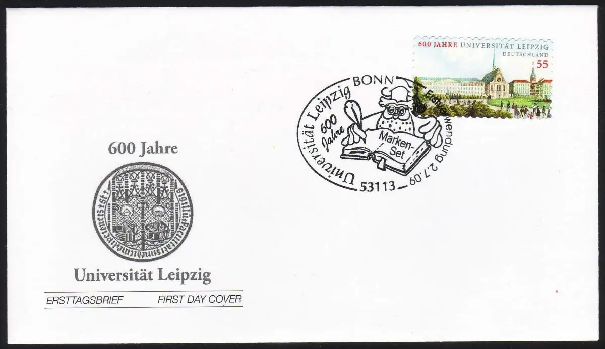 2747 Uni Leipzig - autocollant en feuille de feuille, FDC EV-O Bonn