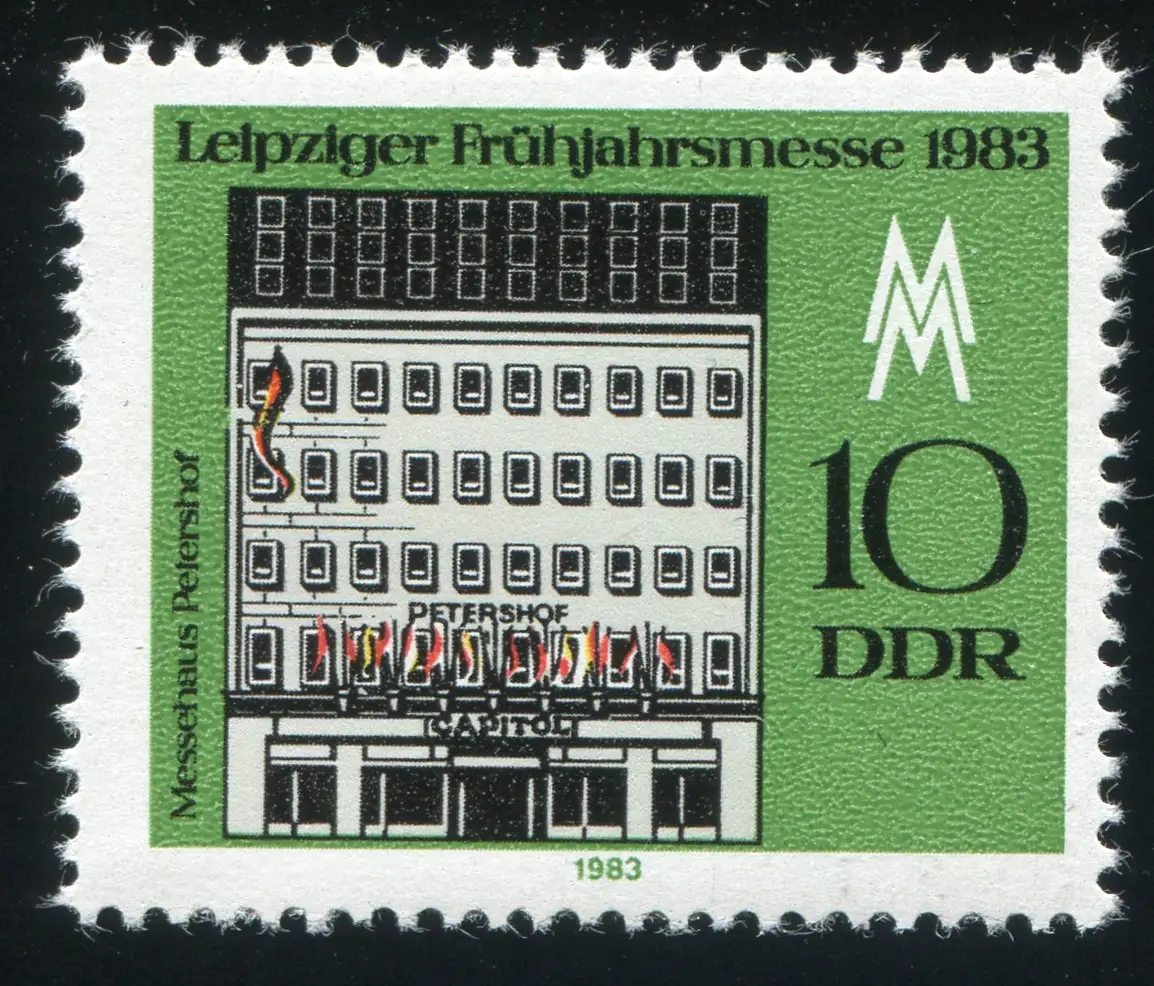 2779I Messe Leipzig 10 Pf: mur supérieur gauche endommagé, champ 44 **