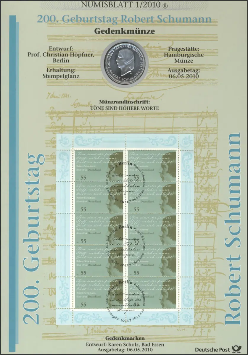 2797 Compositeur et pianiste Robert Schumann - Numisblatt 1/2010