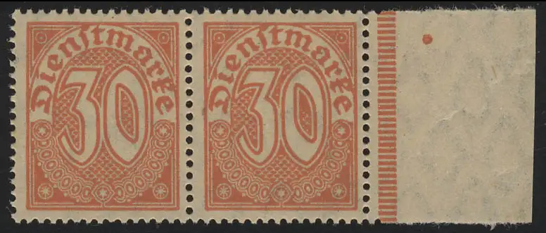 27I Marque de service 30 Pf: zéro intérieur partiellement non rayé, couple de bordure, champ 30 **