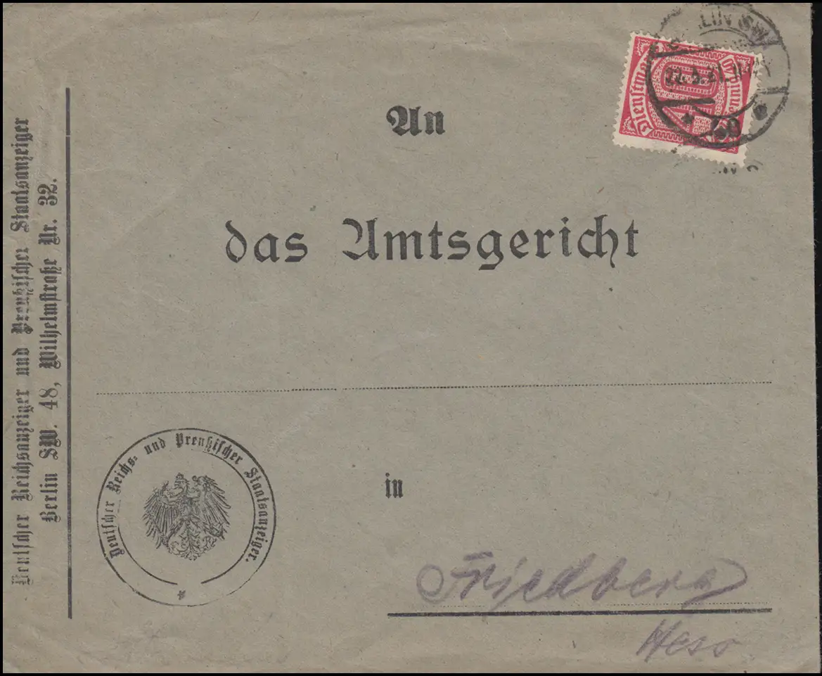 28 Marque de service en tant qu'EF sur lettre de mission du Journal officiel de l'État de Prusse BERLIN 22.3.21