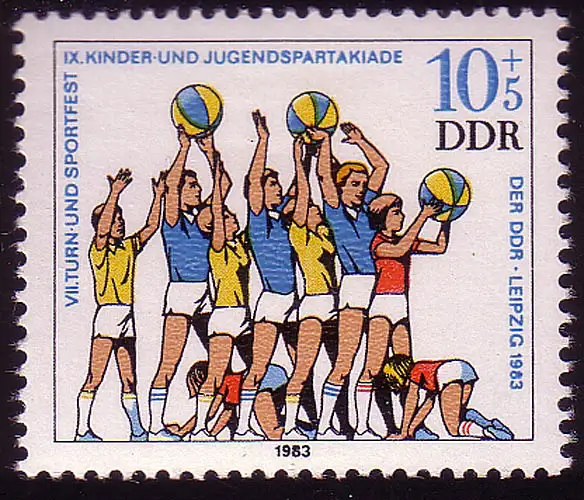 2814 Partage entre enfants et jeunes 1983 10+5 Pf ** post-fraîchissement