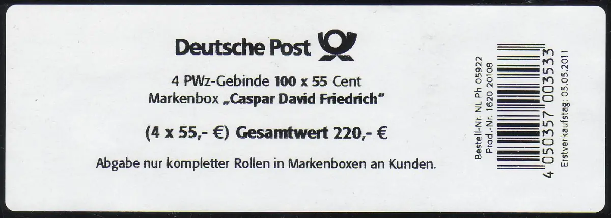2869 C.D. Friedrich - BANDEROLE pour 4 boîtes de marques (sans marques)