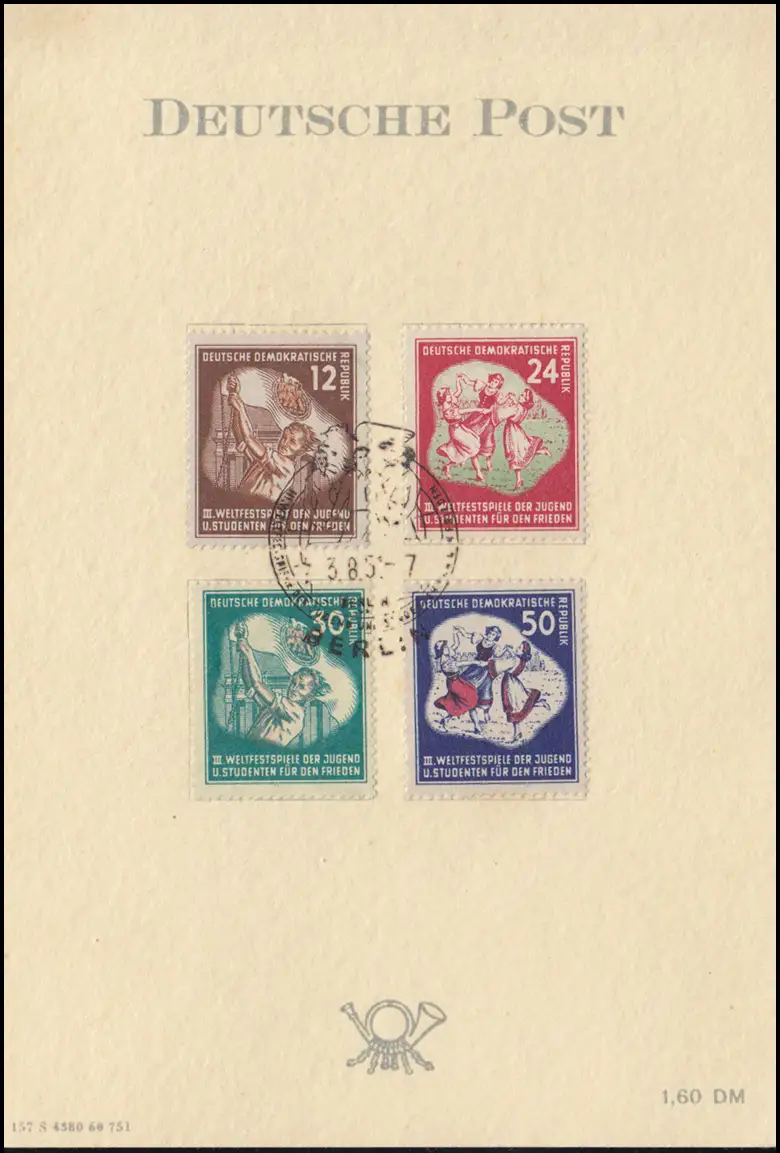 289-292 Festival mondial 1951: jeu en carte pliante officielle avec ESSt BERLIN 3.8.1951