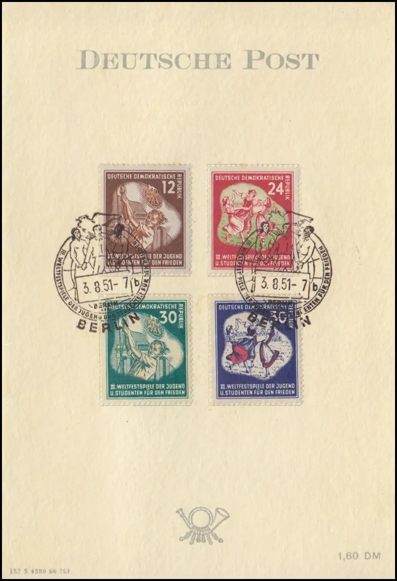 289-292 Festival mondial 1951: carte officielle de débit avec ESSt BERLIN b - 3.8.1951