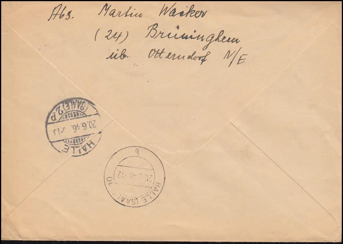 Tampon d'arrivée HALLE / SAALE 2 p 20.6.46 Numéro de catalogue: 925+AM-Post29 Vérification: original Référence produit: 00000000044143