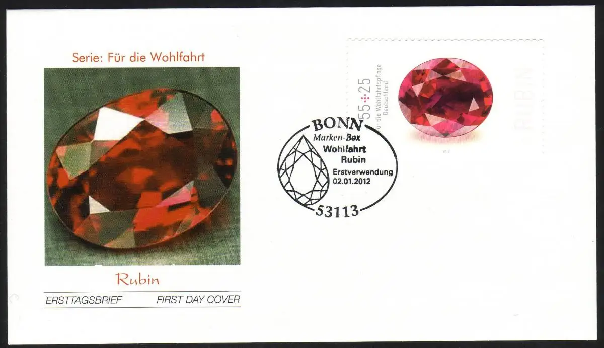 2909 Rubin rubis autocollant en rouleau, sur FDC avec EV-O Bonn