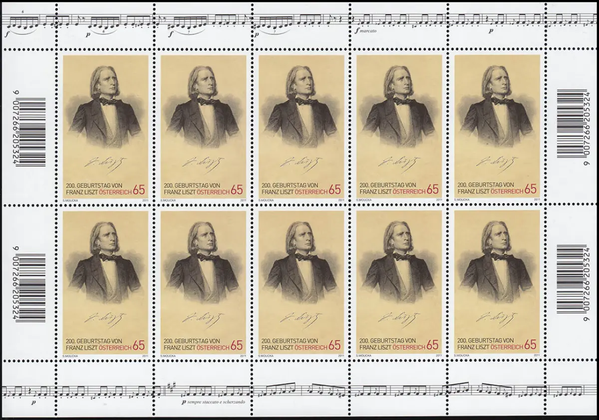 2910 Franz Liszt, Komponist und Pianist - kompletter Kleinbogen, postfrisch **