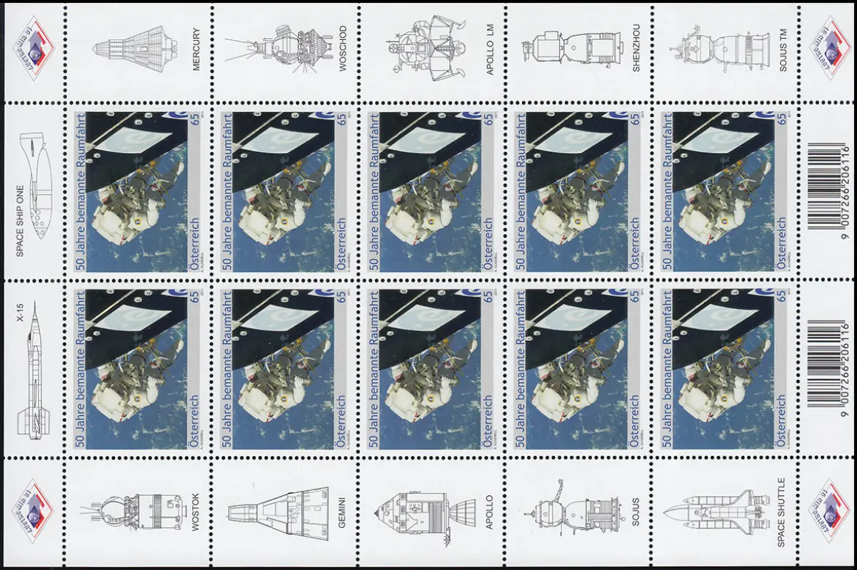 2919 Astronaut, bemannte Weltraumfahrt - kompletter Kleinbogen, postfrisch **