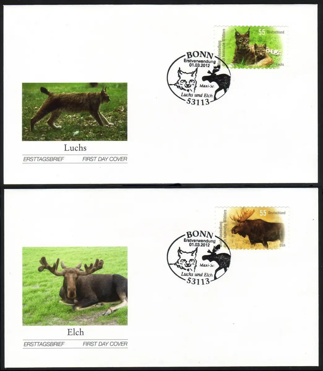 2921-2922 Lynx / Elch autocollant de FB 21, phrase sur 2 FDC EV-O Bonn