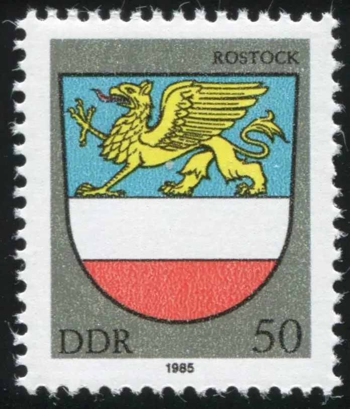2936 Armoiries Rostock: deux lignes de rupture en haut à gauche dans l'aile du grappin, champ 17, **