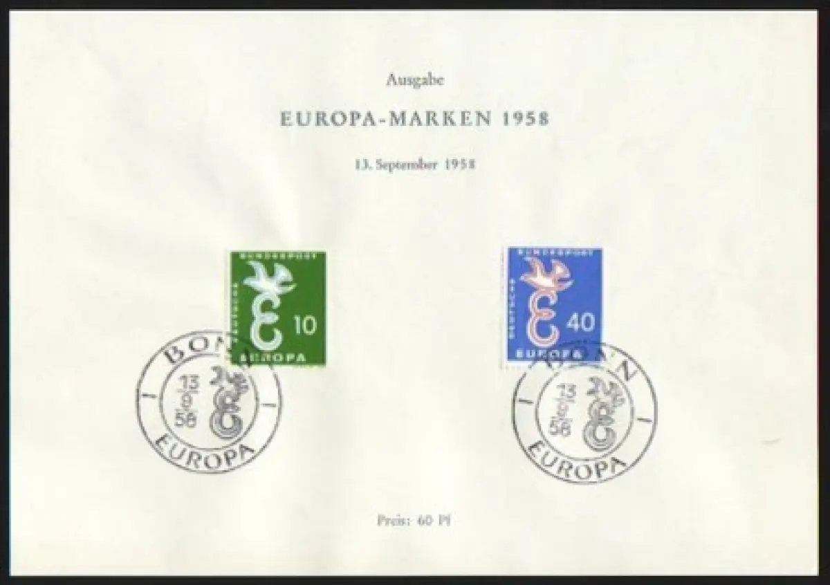(Fiche spéciale de la DBP) ESTE Bonn 13.9.58 Numéro de catalogue: 295-296 Vérification: original Référence produit: 50200195800600