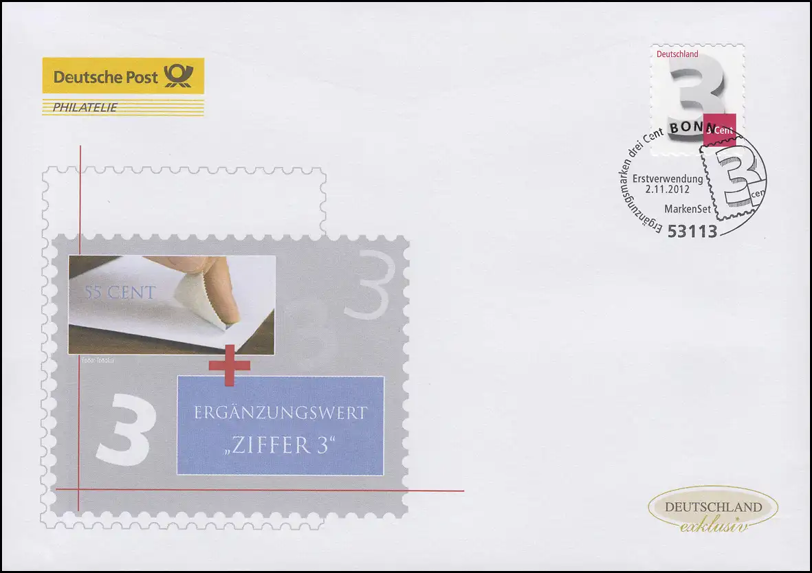 2967 Marque supplémentaire 3 cents - autocollant, Bijoux-FDC France exclusif