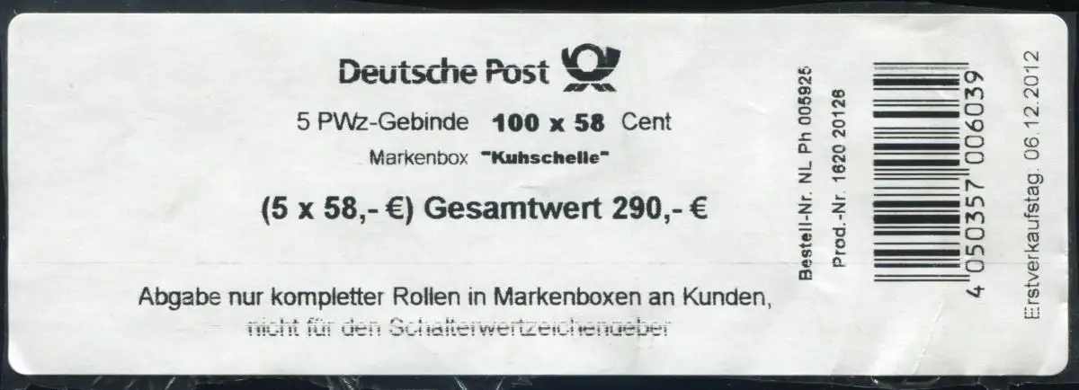 Attention: Cet article est ou a été présenté plusieurs fois. L'illustration montre l'un de ces articles en forme d'exemplaire. La marque livrée a uniquement les caractéristiques indiquées dans la description et peut donc différer de celle-ci. Toutefois, en particulier pour les marques tachées, nous nous efforçons de fournir l ' article illustré. Si cela vous est demandé, veuillez nous le faire savoir.