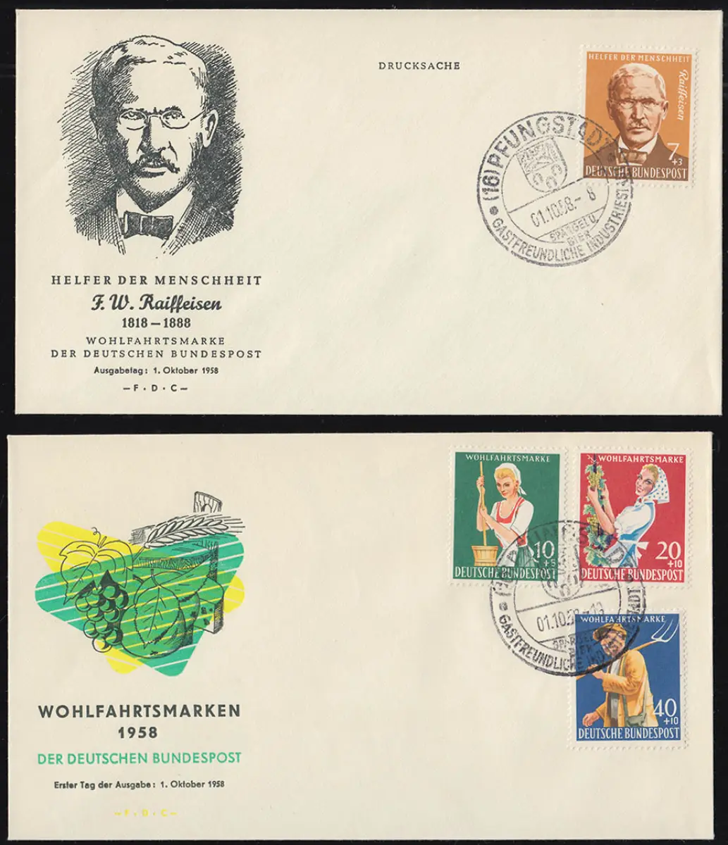 297-300 Wofa Landwirtschaft Satz auf 2 Schmuck-FDC Ersttag Pfungstadt 1.10.58