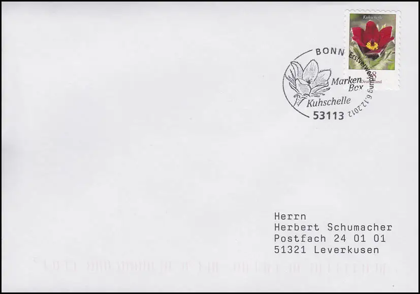 2971 Essuie-glace autocollant, FDC Première utilisation Bonn 6.12.2012