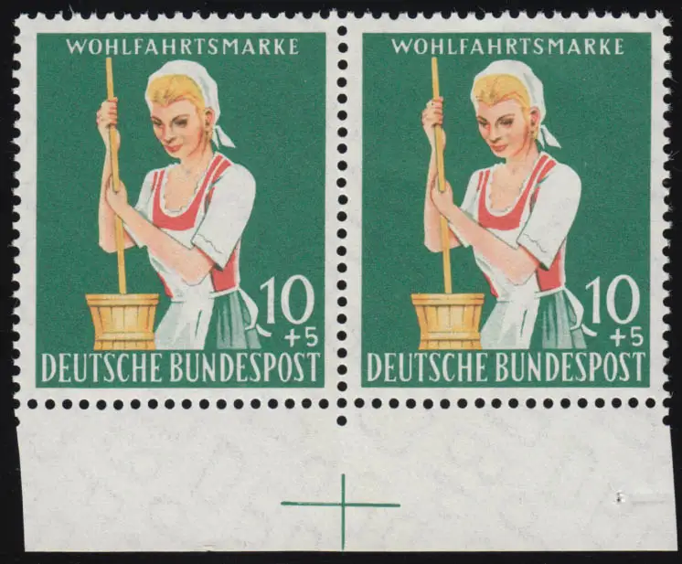 298 Agriculture 10+5 Pf ** Passer-croix, paire en bas 1 trou de décantation