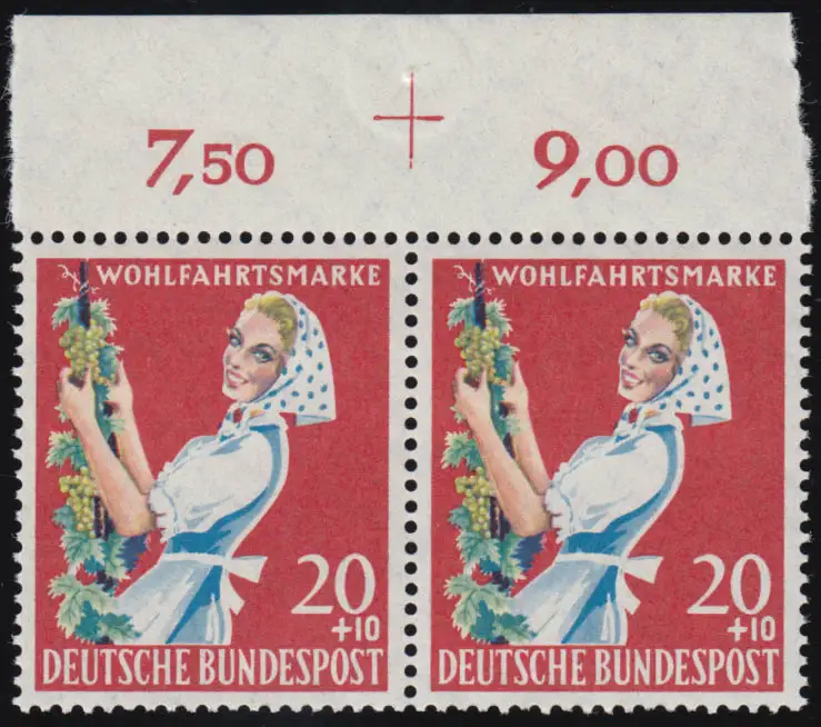 299 Agriculture 20+10 Pf ** Passer-croix, paire en haut pas de trous