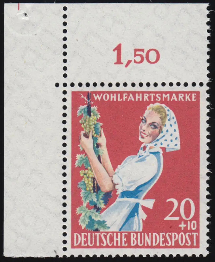 299 Agriculture 20+10 Pf Vigneronne ** Coin o.l. Condition 1-dg +