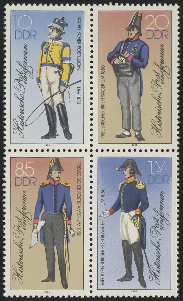2997-3000II uniformes postaux 1986, bloc quatre impressions, **