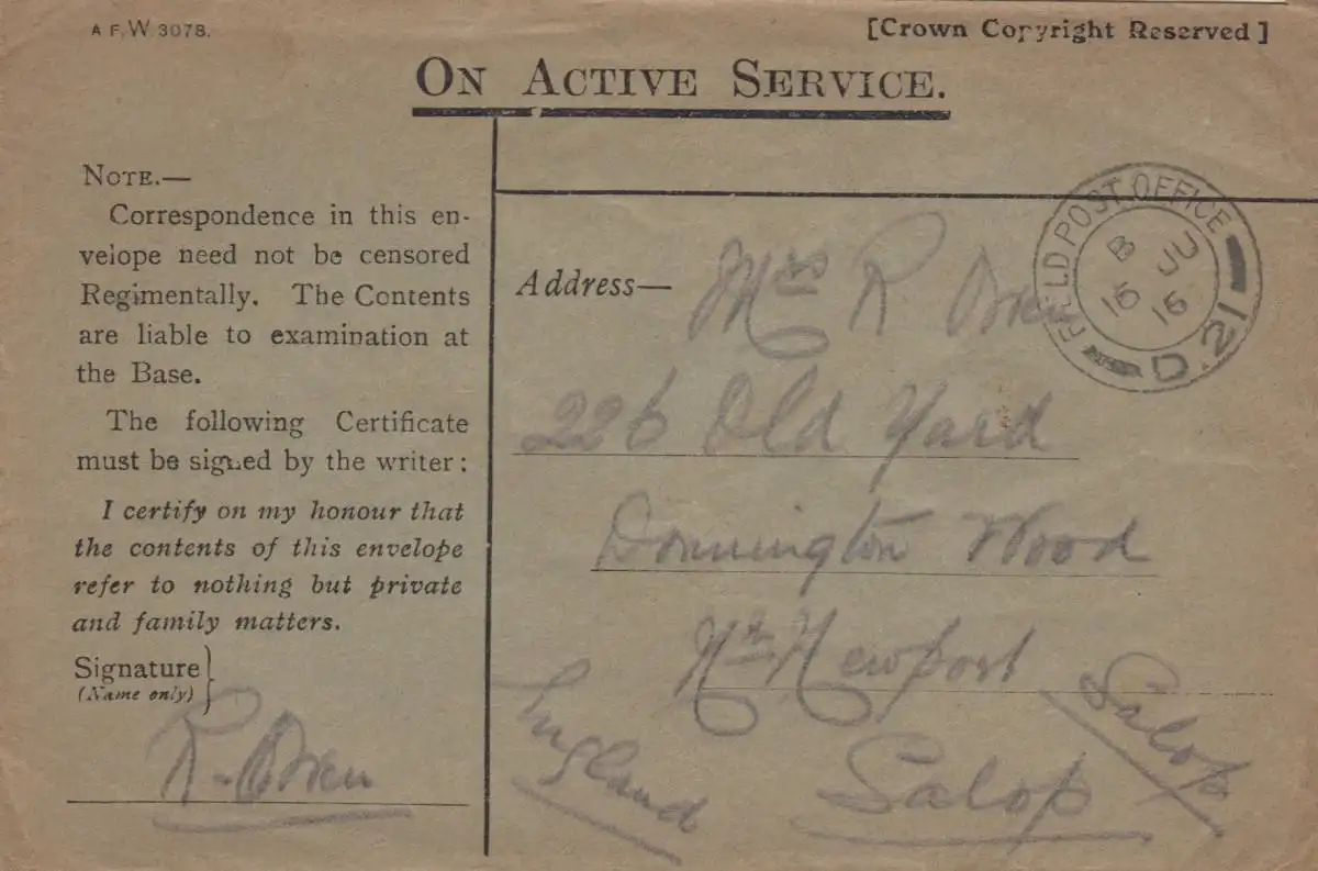 2x 1916: Champ de la France à Salop, Newfort