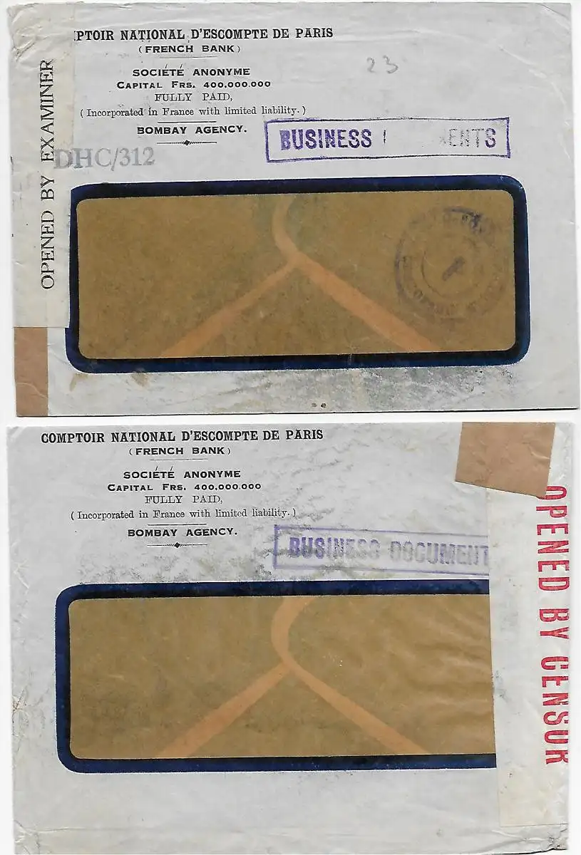 2x Bombay, Business Documents vers 1940 avec censure vers l'Iran