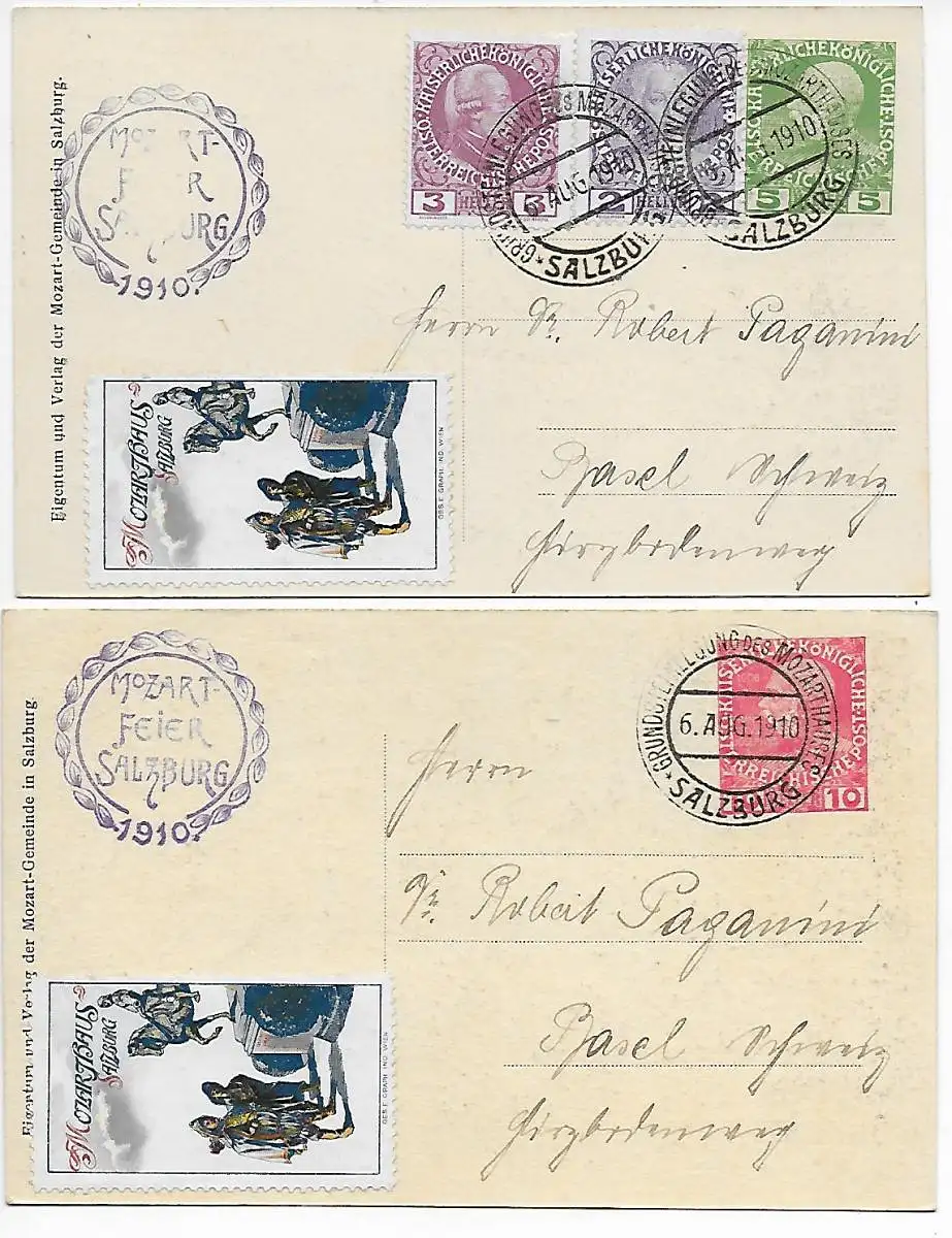 2x Mozart Base de la pierre de Salzbourg à Dr. Robert Paganini-Pionnier de l'Aviation 1910