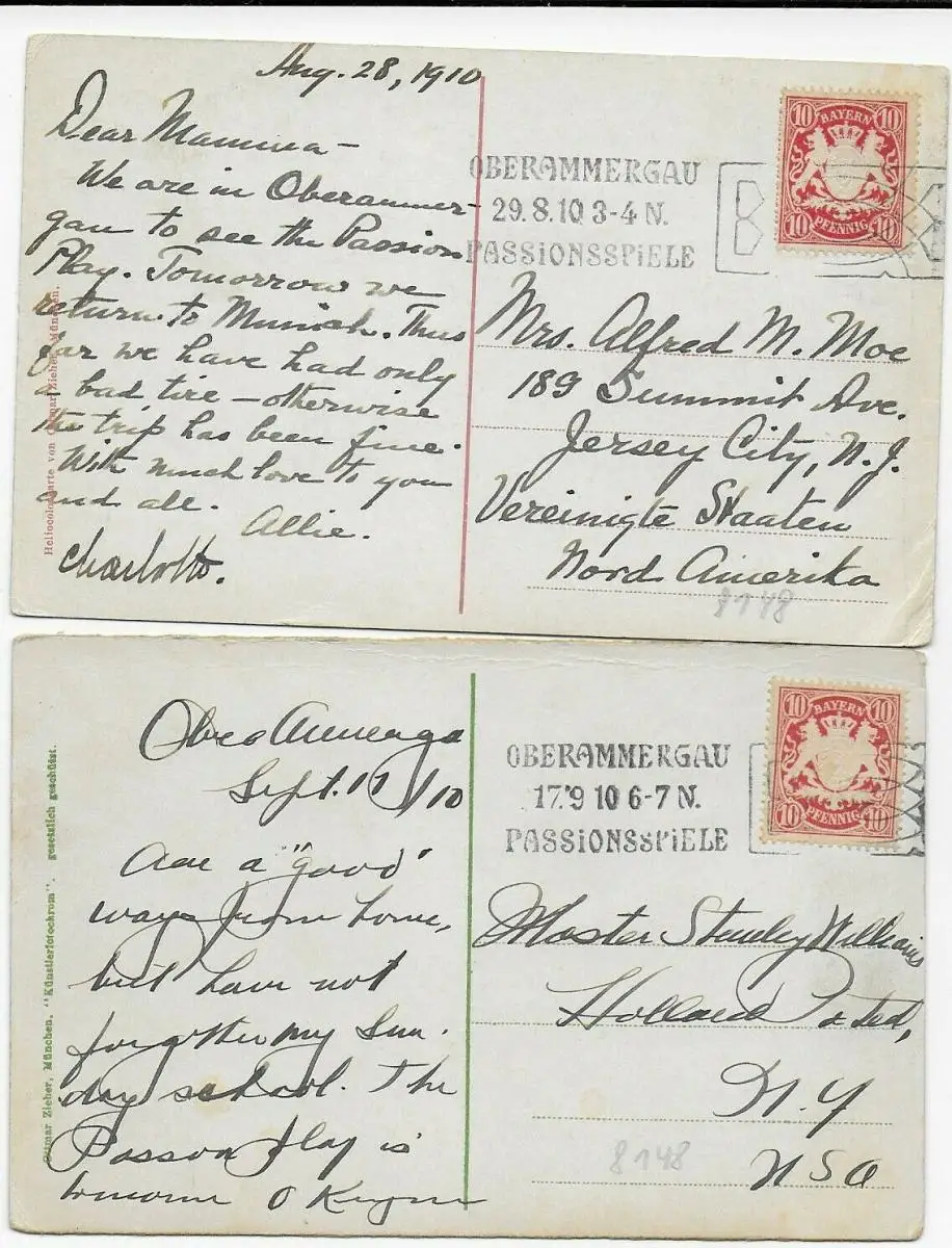 2x Jeux de passion Oberammergau 1910 vers États-Unis