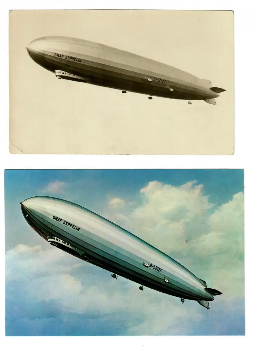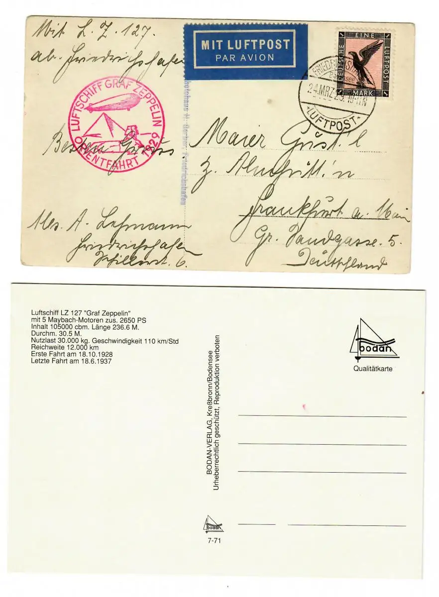 2x Zeppelin: Luftschiff Graf Zeppelin, Orientfahrt 1929, neuere Karte von LZ127