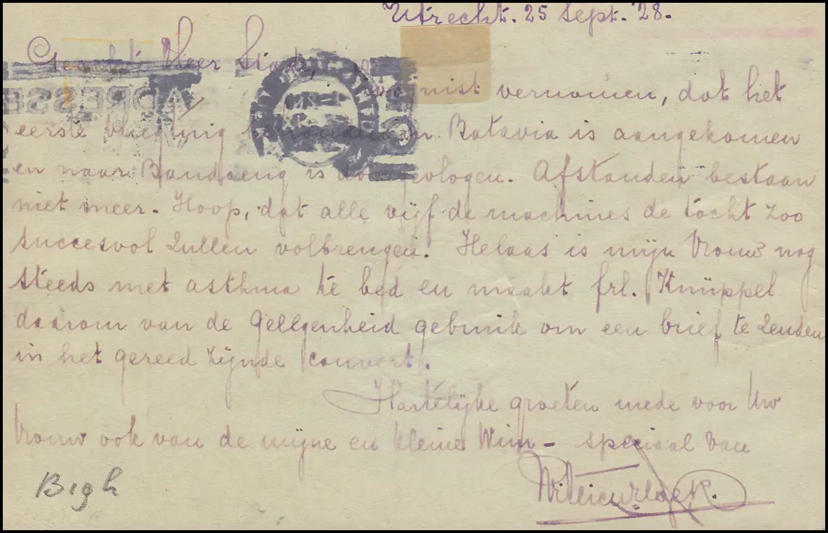 3. Vol d'essai NL vers l'Inde avec carte H-NAFC à partir de UTrecht 26.9.28 à Malang