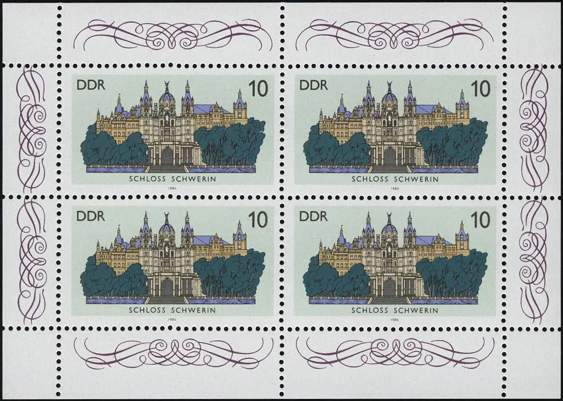 3032 Château-petite-coude Schwerin 4x 10 Pf 1986, ** post-fraîchissement