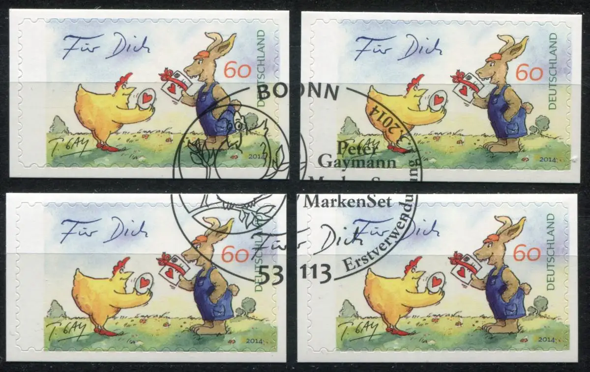 Geyermann-Cartoon Pâques / Au dos: pour toutes les marques blanches, 4 marques chacune avec les différents cachets d'utilisation initiale d 'angle Bonn Numéro de catalogue: 3066 Examen: original Référence produit: 50000306603399>Attention: Cet article est ou a été disponible plusieurs fois. L'illustration montre l'un de ces articles en un exemplaire. La marque fournie a uniquement les caractéristiques indiquées dans la description et peut donc différer de l . Toutefois, pour les timbres, nous nous efforçons de fournir l l\'article représenté. Si cela vous convient, veuillez nous le faire savoir.